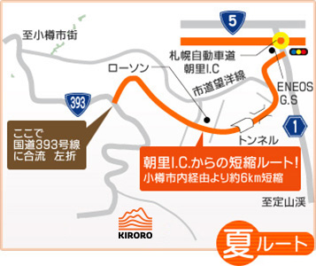札幌西I.C 札樽自動車道 朝里I.C 道道1号線 新光5丁目交差点 道道956号線 国道393号線 キロロリゾート