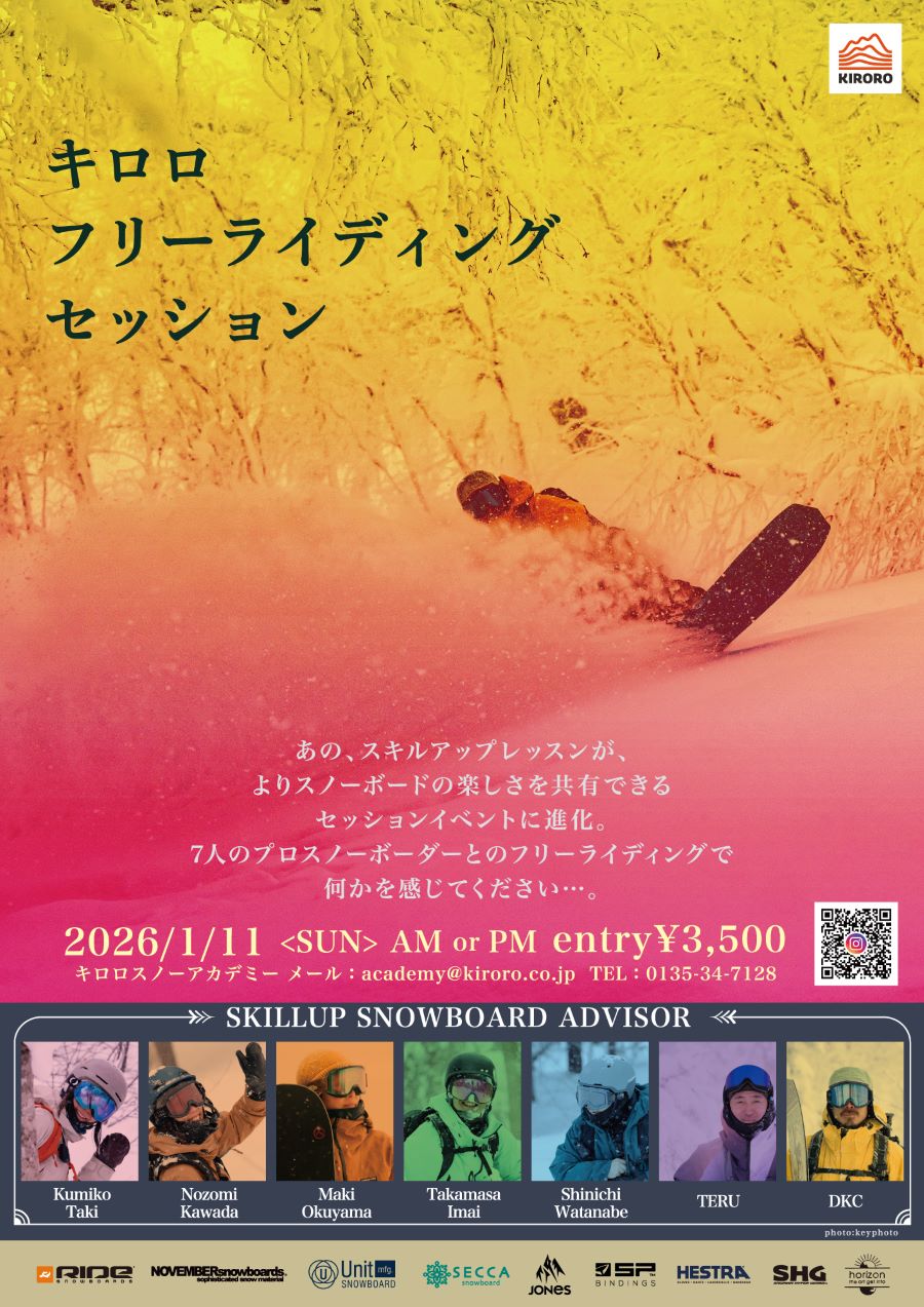 ※メールでお申し込みの場合、件名に「キロロフリーライディングセッション参加希望」と明記していただき、必要事項をご記入の上ご送信ください。