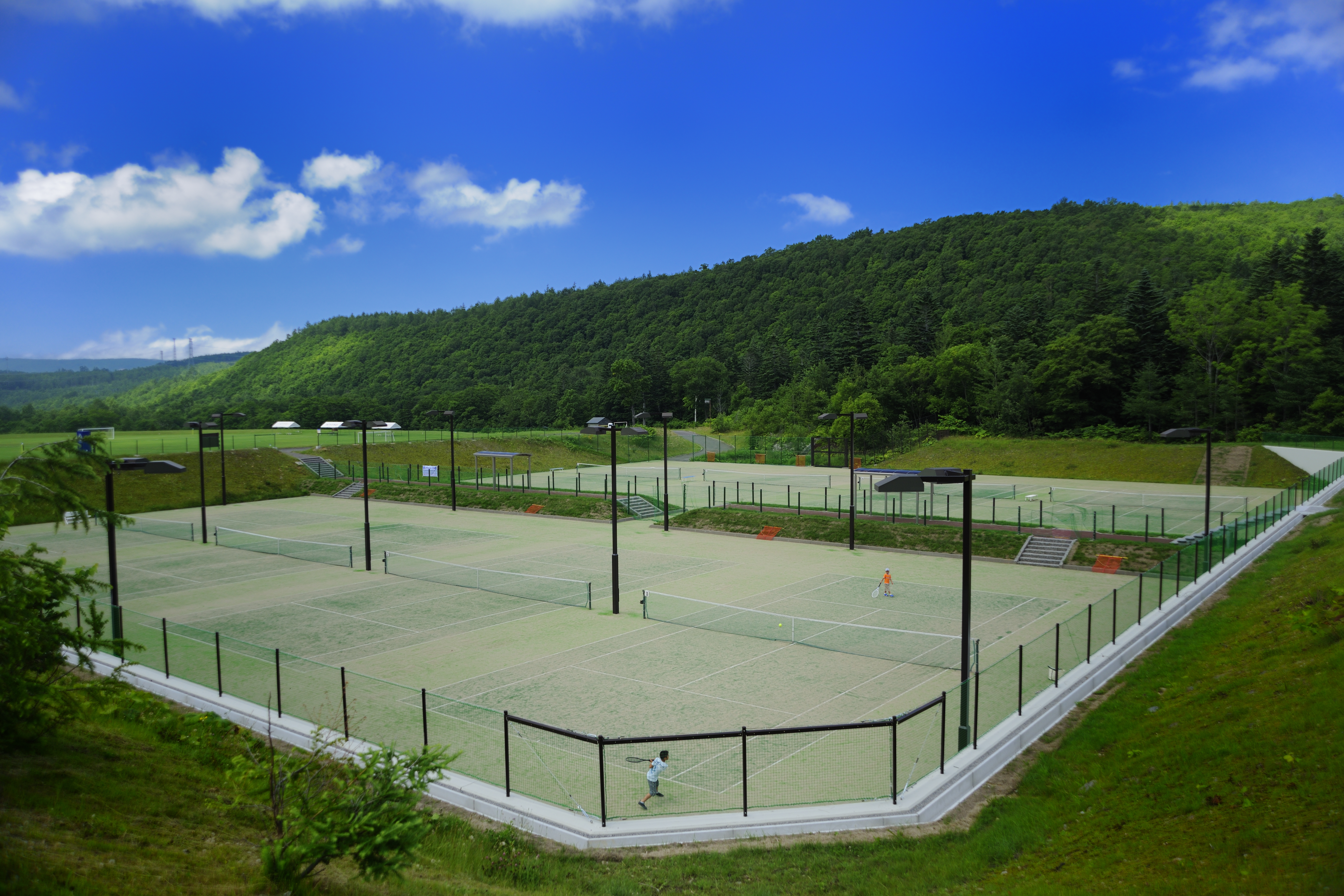 ①Park Golf ②Bungee Trampoline ③Euro-Bubble Ball ④Tennis ⑤Paddle Tennis ⑥Bicycle Rental ⑦Treasure Hunt ⑧Sports Equipment Rental ⑨Trout (Yamame) Fishing ⑩Table Tennis ⑪Strider Enjoy Park ⑫Slacklining ⑬Disc Golf ⑭Hot Springs (Onsen) ⑮PoolOperating Period :